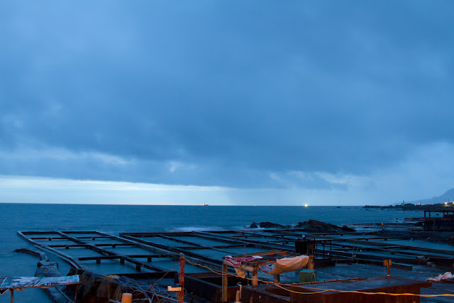 本來這禮拜日一個人要開車去南投五城朝聖,看看了氣象雲圖,果真是對流雲旺盛,且看起來都在中南部一帶,所以只有變更地點到基隆外木山。禮拜六我就拼命睡覺,因為我老了沒體力,晚上上線居然遇到一個怕不死傢伙,我問她要不要去拍日出,她居然回答好啊,果真對攝影有一點熱情,因為我找10個估計大概都罵我瘋子,因為周圍的玩攝影的朋友還真是10根手指數的完。就這樣大概一點半到到蘆洲薇婷家,看他一副很有體力樣子,果真年輕真好,我真的老了只能靠意志力苦撐。一路上車上就說了拍攝日出方法,這都是需要累積經驗,很多人都是拍不好,這本來就是要多練,且不是每次都可以遇到妳想要的景色,這是需要運氣的成份存在。車上哈啦攝影的事,不知不覺就到了基隆外木山,慘了功課沒有做的很好,找不到網路上大家說拍攝地點,這時候我就說那去貢寮拍吧,我的天啊『鬼檔牆事件出現』,到底發生了什麼事,我的papago居然帶我回汐止在到基隆在到貢寮,我的天啊果真事鬼檔牆,害我過了兩次收費站,薇婷說不會我日出看不到吧,我跟他說機率很高,因為天氣看起來不好,結果到了貢寮果真下大雨,我們就躲在客運車站裡等待日出,雨下很大無法拍攝。中間我們哈啦還是攝影技術,她說雨這樣大如何拍,我的回答就是雨很大還是可以拍,只是妳要找題材來拍攝,我跟他說了雨滴拍攝方式,這傢伙居然就拍起來,哈哈哈張張失敗,如果你一次都成功,那攝影好像就不用學了吧。好險天快亮了雨就變得很小,說了這樣多話,我們看照片吧,看我們這一次槓龜做一下記錄。