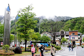 日本阿爾卑斯山之稱的 立山黑部峽谷。從富山地方鐵道的立山車站到長野縣扇澤,全長約86 公里的高山山道(ALPINE ROUTE),是利用多種巴士、有軌纜車、空中索道等為交通工具,來穿越立山黑部峽谷的專用道路。它是為了建造黑部川第 4 發電所而修建的一條運輸道路,在1972年全線開通。沿途峻嶺、深谷、開闊的天地、和媲美瑞士的高山美景。慘了當天到達立山天氣下雨且人潮有夠多人,不幸的我們只排到11點多電車,只好逛逛其他地方。
