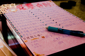 要配戴的金飾與喜帖,右邊是大餅亮做的愛情證書,大家都說大餅亮做的很好看,當然要幫他留戀一張