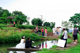 另外一個點水池,這樣長鏡頭來壓縮景深,我們也在等這一堆新人拍完。