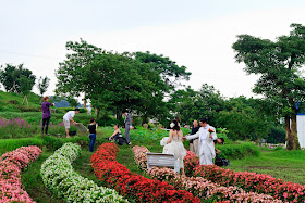 到處都是新人在拍婚紗,看圖就ˇ知道我還是拍很少張的,偷拍人家怕不太禮貌,光這下圖花圃就兩隊新人照拍照了。
