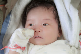 無辜的表情,因為本來在睡的,被吵醒了,且等一下你就受到妳小姑的毒手